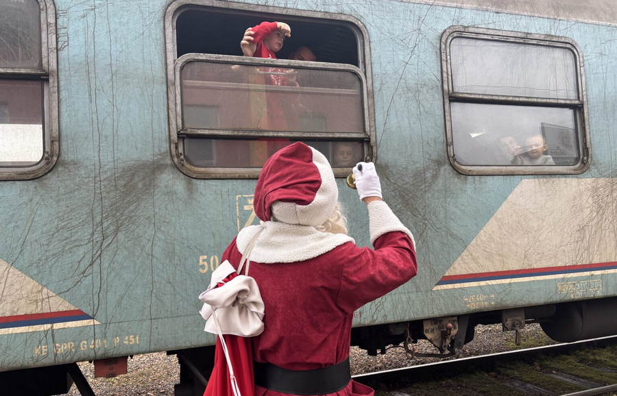 DJEDA MRAZ PODIJELIO PAKETIĆE DJECI ŽELJEZNIČARA U VOZU