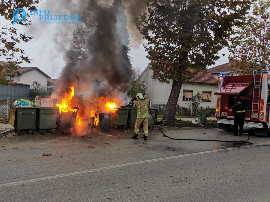 U Kozarskoj ulici izgorjela su tri plastična kontejnera, u požaru koji su s jednim vozilom gasili prijedorski vatrogasci.