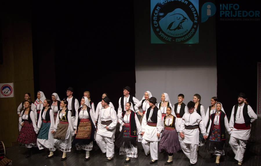 Etno društvo „Srpski sokolovi Kozare“ Urije–Prijedor večeras je u prepunom Pozorištu Prijedor poklonilo publici koncert koji će se još dugo prepričavati – večer ispunjenu ritmom, pjesmom i onom tihom toplinom koju samo izvorna potkozarska pjesma može probuditi. Pod nazivom „Na krilima tradicije“, ovo veče pretvorilo se u pravi praznik običaja i zajedništva, uz goste iz Banjaluke i Prokuplja. Na sceni su se smjenjivale igre, nošnje i pjesme koje su decenijama čuvale dušu ovog kraja, a publika – od prve do posljednje minute – uzvraćala je aplauzima, osmijesima i ponosom. Uz domaćine, program su obogatili RKUD „Pelagić“ iz Banjaluke i KUD „Toplica“ iz Prokuplja, koji su svojim nastupima donijeli šarm šumadijskih i južnosrpskih krajeva, ali i toplinu prijateljstva koje traje. Za KUD „Toplica“ ovo je drugo gostovanje u Prijedoru, a njihov predsjednik Zoran Petrović nije krio oduševljenje prijemom.