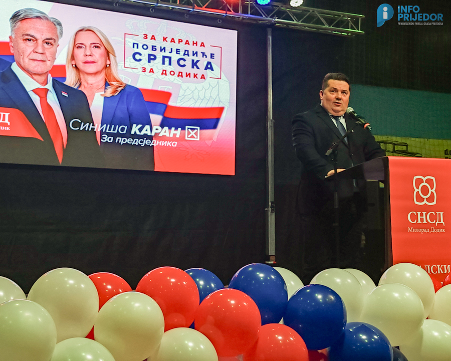 – Siniša Karan je naš kandidat, ali koliko vidim, on je i narodni kandidat – poručio je Dodik, ocjenjujući skup kao “veličanstveno okupljanje SNSD-a, koalicionih partnera i naroda”.