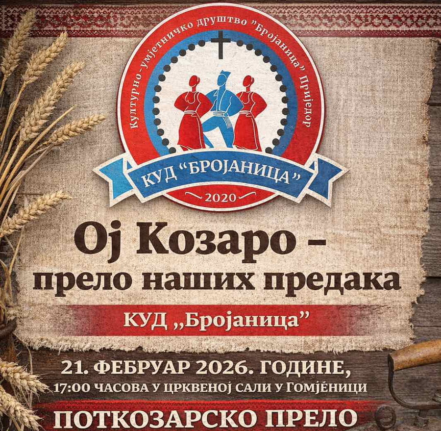 U subotu od 17.00 časova, u crkvenoj sali u Gomjenici, biće održano drugo po redu Potkozarsko prelo pod nazivom „Oj, Kozaro – prelo naših predaka“, u organizaciji KUD-a „Brojanica“ i njihove Sekcije žena. Riječ je o manifestaciji koja ima jasan i plemenit cilj – očuvanje srpskih narodnih običaja, tradicije i kulturnog identiteta Potkozarja, uz njegovanje nematerijalnog kulturnog naslijeđa koje se vijekovima prenosilo s koljena na koljeno. Prelo će okupiti zaljubljenike u tradiciju, ručni rad i izvornu pjesmu. Posjetioci će imati priliku da vide i predstavljanje ručnih radova – veza, pletenja i heklanja – kao i da uživaju u mirisima i ukusima tradicionalne potkozarske kuhinje. Poseban akcenat biće stavljen na ojkaču, snažnu i prepoznatljivu pjesmu našeg kraja, te na staru igru kapanja, koja je nekada bila sastavni dio seoskih okupljanja. Osim domaćina iz KUD-a „Brojanica“, u programu će učestvovati i članice Kola srpskih sestara, Udruženje žena „Vreteno“ iz Koprivne, članovi Etno društvo Srpski sokolovi Kozare, Udruženje za očuvanje tradicije, članice Udruženja penzionera Gomjenice, kao i pojedinci koji s posebnom ljubavlju čuvaju običaje Potkozarja – mladi Stefan Lazić i baka Stoja iz Verića.