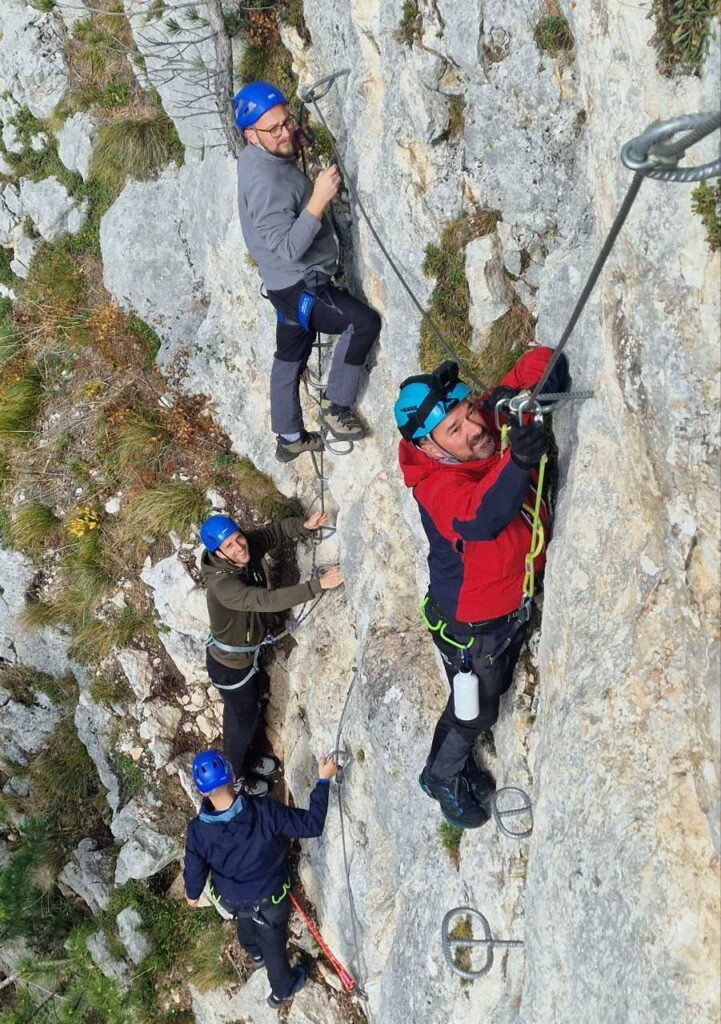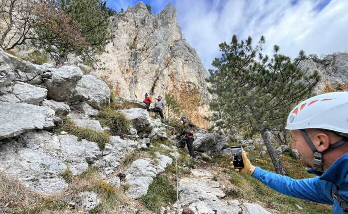 Njihova avantura započela je usponom na popularnu feratu “Sokolov put”, smještenu na području Crvenih stijena. Ova jedinstvena ferata, poznata po dva viseća mosta ukupne dužine oko 350 metara, vodi do samog vrha Crvenih stijena na 1.423 metra nadmorske visine. Riječ je o ruti koja nudi idealan spoj sigurnog penjanja, adrenalinskog doživljaja i nezaboravnih pejzaža.