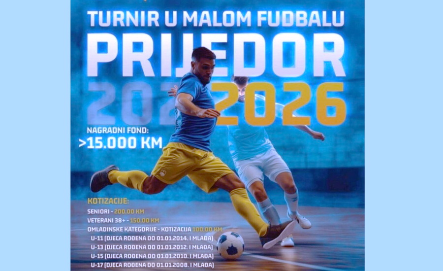 Prijedor će početkom 2026. godine ponovo disati u ritmu malog fudbala. Tradicionalni turnir „Prijedor 2026“ startuje 3. januara, dok je veliko finalno veče zakazano za 18. januar, kada će publika u Sportskoj dvorani „Mladost“ dobiti odgovore na pitanje ko su najbolji na parketu. Organizator turnira je Sportska dvorana „Mladost“, uz pokroviteljstvo Grada Prijedora, koji i ove godine stoji iza jedne od najznačajnijih sportskih manifestacija u zimskom periodu. Direktor dvorane „Mladost“ Tijana Bereta Jacišin rekla je da su pripreme završene i da su obezbijeđeni svi neophodni uslovi za kvalitetno i fer takmičenje.