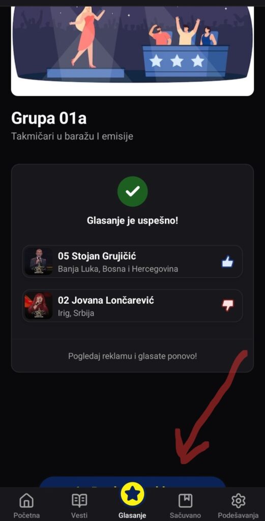 Nakon instalacije potrebno je ući u opciju „Glasaj“ i podržati Stojana Grujčića.