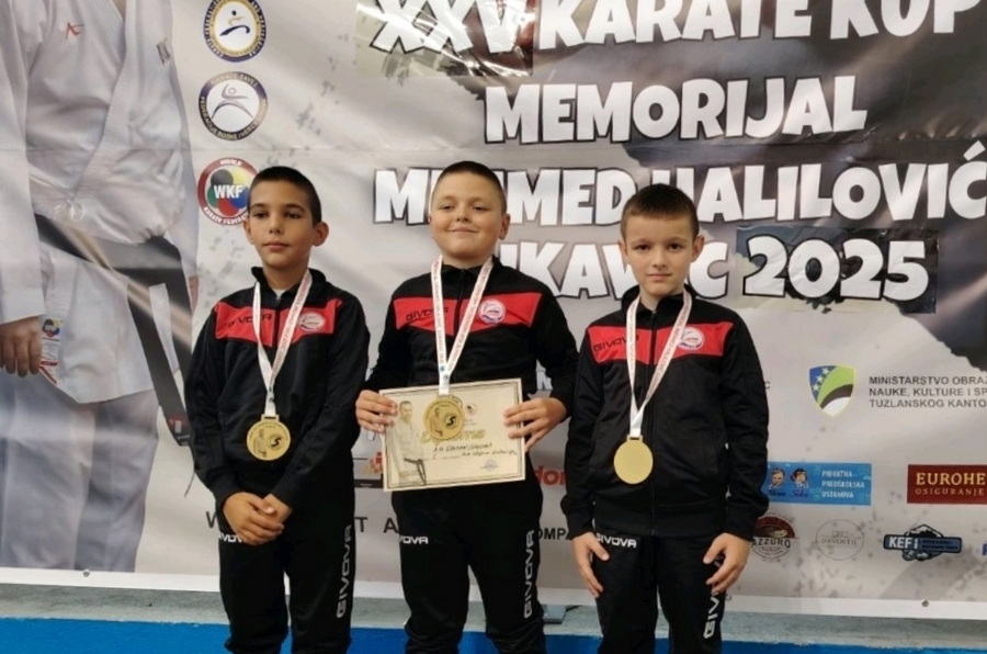 Pravi sportski vikend za prijedorske karatiste! Članovi Karate kluba „Shodan“ iz Prijedora danas su nastupili čak na tri različita turnira – u Novom Sadu, Lukavcu i Brodu – a samo su u Novom Sadu i Lukavcu ostvarili zapažene rezultate koji potvrđuju izuzetnu formu mladih takmičara ovog kluba. Iako je bilo logistički zahtjevno organizovati odlazak na tri takmičenja istog dana, prijedorski tim se i ovog puta pokazao kao primjer predanosti, timskog duha i sportskog ponosa. Na međunarodnom turniru „Kup prijateljstva 2025“ u Novom Sadu, gdje je učestvovalo 48 klubova iz pet država i više od 600 prijavljenih disciplina, ekipa „Shodana“ u sastavu Andrej Škorić, Andrej Tomić i Filip Rajilić osvojila je zlatnu medalju u disciplini borbe timski. U pojedinačnoj konkurenciji, Andrej Škorić stigao je do srebrne medalje, a o zlatu je odlučivao takozvani „Senshu“ – prvi osvojen poen, nakon što je finalni meč završen neriješeno 2:2.
