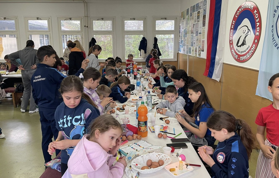 U prostorijama Etno društvo Srpski sokolovi Kozare iz prijedorskog naselja Urije danas je, u duhu pravoslavne tradicije i predstojećeg Vaskrsa, održana prva radionica farbanja vaskršnjih jaja, koja je okupila čak 140 najmlađih članova ovog društva.