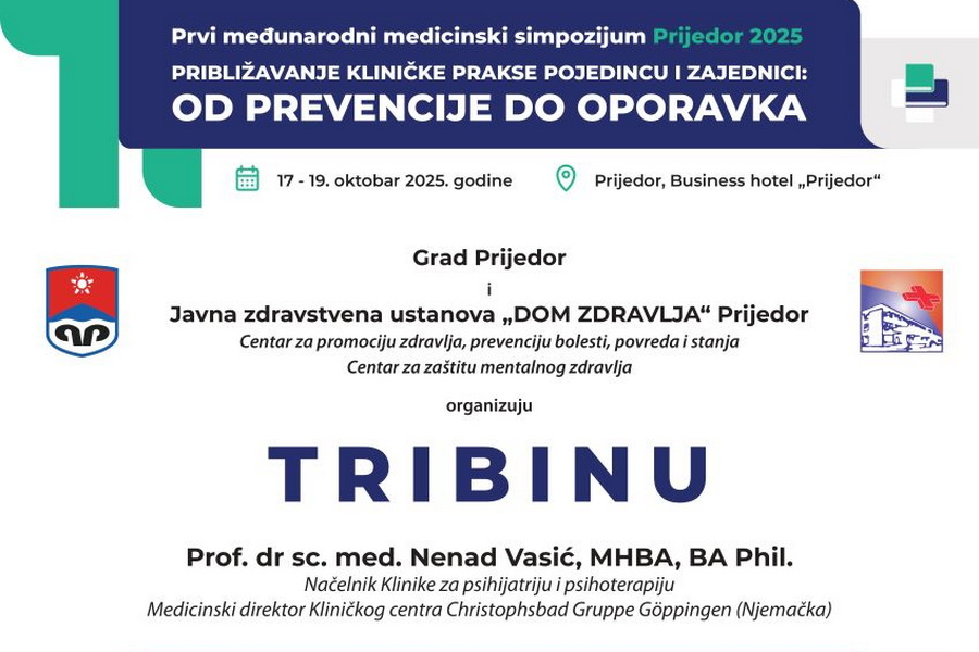 U okviru simpozijuma, prijedorski Dom zdravlja i grad Prijedor organizuju i posebnu tribinu pod nazivom “Mentalno zdravlje u novom dobu: šta nam je činiti?”