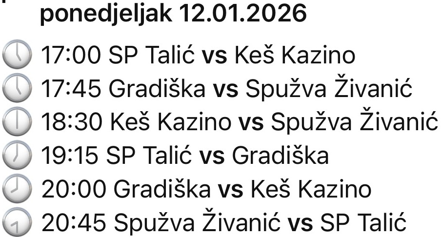 Novogodišnji Turnir u malom fudbalu “Prijedor 2026” nastavljen je sinoć. Igrale su se utakmice grupe A u konkurenciji seniora. Ekipa Stanišić Ribnik je bila superiornija i osvojila prvog mjesto.