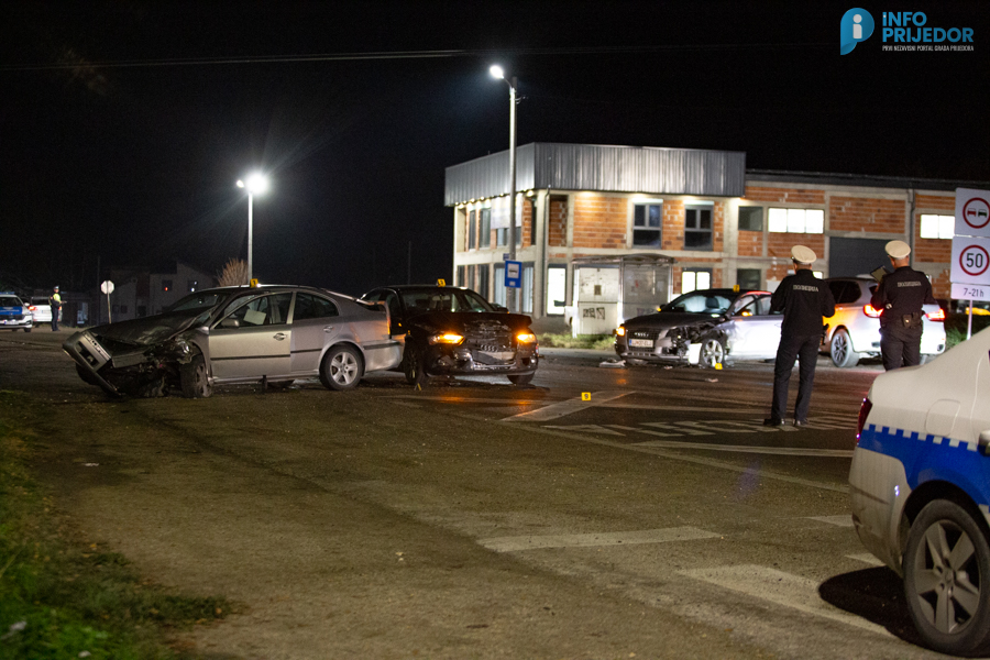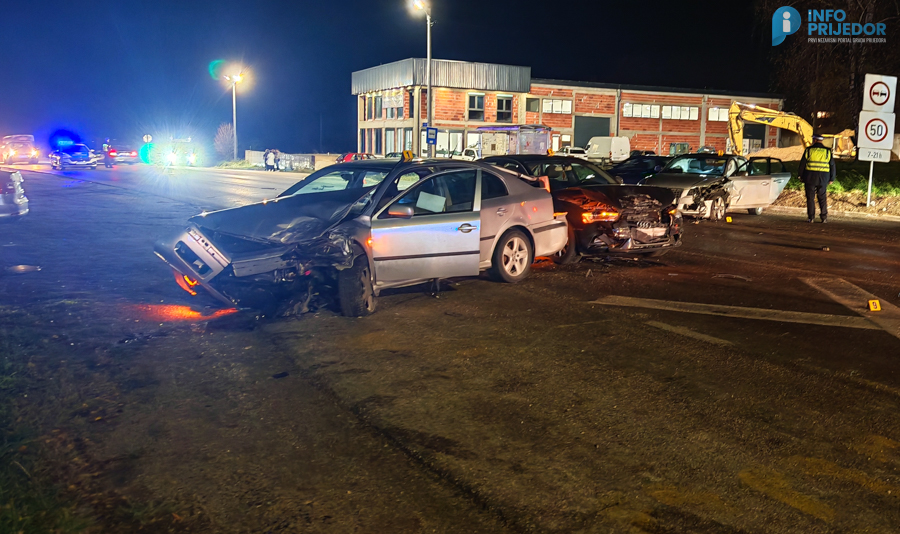 Na magistralnom putu Prijedor – Banja Luka, u mjestu Gornji Orlovci, večeras oko 19.15 časova dogodila se teža saobraćajna nezgoda u kojoj su učestvovala tri putnička vozila – “škoda” kojom je upravljao I.K., “audi” koji je vozio D.J. iz banjaluke i drugi “audi” za čijim volanom je bio N.B. iz Prijedora u čijem su vozilu bila tri lica, svi inicijala M.P., od kojih dvije ženske osobe, svi iz Prijedora. Prema informacijama sa terena, ekipa Službe hitne medicinske pomoći Doma zdravlja Prijedor ukazala je pomoć za petero povrijeđenih lica. Svi su potom prevezeni u Bolnicu “Dr Mladen Stojanović” Prijedor a kako saznajemo oba vozača i troje putnika su zadobili lakše povrede.